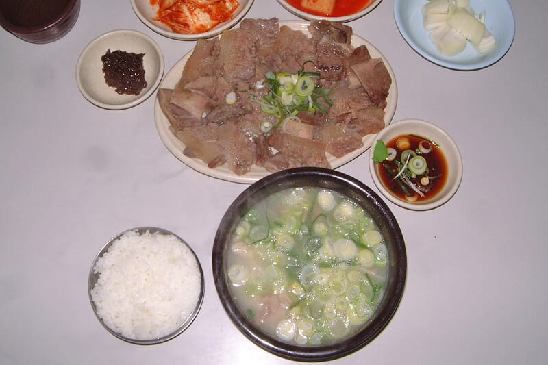 ソモリクッパプ。京畿道広州市昆池岩邑昆池岩里「イェンナル元祖昆池岩ソモリクッパプ(옛날원조 곤지암소머리국밥)」にて2003年1月22日撮影。