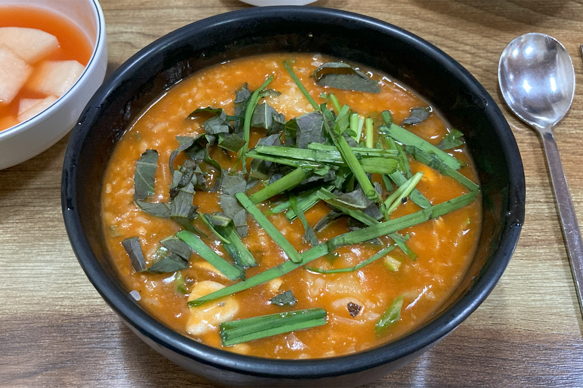 パガオジュク。全羅北道茂朱郡茂朱邑邑内里「錦江食堂(금강식당)」にて2025年4月2日撮影。
