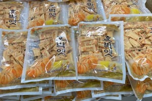 - ホバクヨッ(호박엿)は、カボチャ飴(「ホバクヨッ(カボチャ飴/호박엿)」の項目も参照)。伝統的な製法では、名産であるカボチャ(늙은호박)と麦芽(엿기름)を混ぜて煮詰め、トウモロコシの水飴(옥수수엿)を加えて作る。島内の直売店や、土産物店で販売され、カボチャゼリー(호박젤리)、カボチャ饅頭(호박빵)などの商品もある。