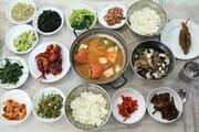 2023年8月30日 (水) 08:55 23083002.JPG (ファイル) 990キロバイト Hatta ヤクチョトルソッパプ(薬草釜飯)と薬草料理の定食。忠清北道堤川市新月洞「テボミョンガ(대보명가)」にて2018年7月3日撮影。 1