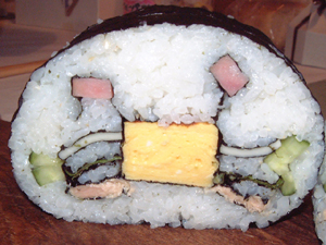 僕はツナ、スライスチーズ、エゴマの葉の3種。これを海苔で巻きました。