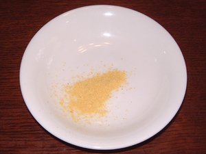 赤い唐辛子が出てくると思いきや、真っ黄色な粉が出てきました。