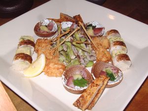 皿のふちにぐるっとアナゴの薄造りが敷き詰められておりました。