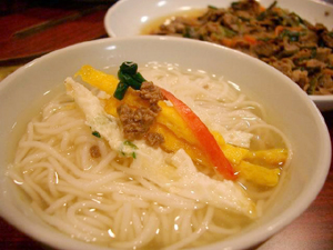 煮干ベースのダシに、素麺のような細麺が入ります。