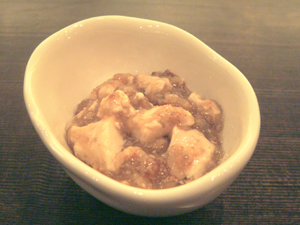 豆腐とゼラチン質な肉を和えて、ユズの香りをつけたようなもの。