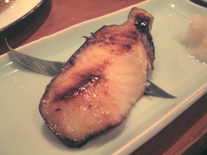 焼酎をロックで飲みつつ、銀ダラの焼き物などをつまみます。