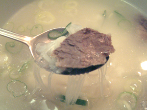 ソルロンタンは牛肉、牛骨、牛の内臓などをじっくり煮込んだ料理。