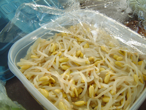 差し入れにこんな手作りのモヤシナムルがあったりも。