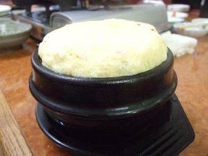 隣のテーブルにサービスで出たケランチム(卵蒸し)ですが、