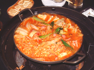韓国式にチゲ仕立てで調理したのが始まりというこの料理。