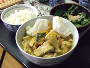 (03月11日)師匠宅でタラのチゲとジャガイモごはん。