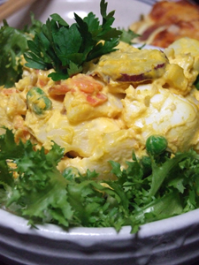 サツマイモが入っていたり、コーンやグリンピース、ゆで卵、