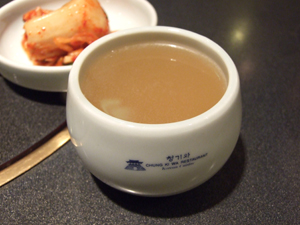 アツアツのユクスを飲むと、凝縮された牛のうまみが口中にじわじわ。