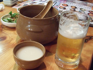二次会の韓国魚市場では生とマッコリ頼んで、ホワイトアイにして飲みました。