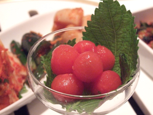 器が変わってさらに見栄えがよくなったミニトマトのキムチです。