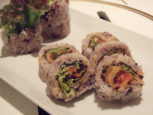 ヌードキンパプ(いわゆる裏巻き)状に作ったもの。