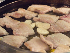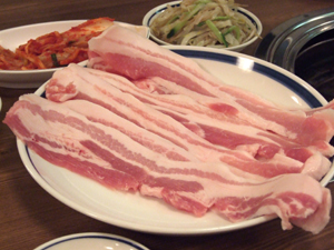 一見、なんの変哲もないサムギョプサル(豚バラ肉)ですが、