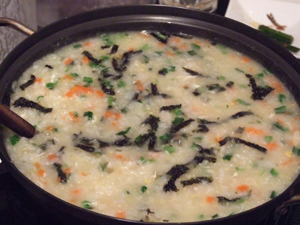 鶏肉を煮込んだスープにごはんを入れ、シメとして出してくれます。