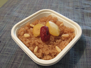 黒砂糖やハチミツで味をつけた甘い味のおこわで、