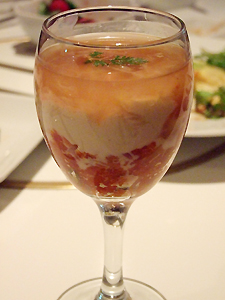 同じく新メニューの、冷製生湯葉とネギトロキムチの蟹あんかけ。
