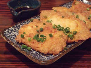 奥に見える薬味醤油につけて食べました。