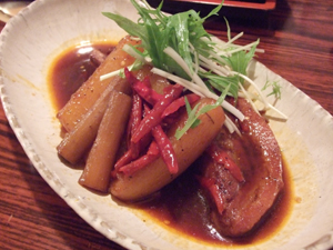 一緒に煮込まれたゴボウ、大根なども味がよく染み込んで美味です。