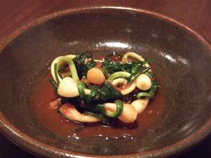 冒頭の写真は、オススメメニューに掲載されていたノビルのキムチ。