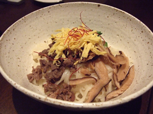味的には日本の冷やしうどんに近いですね。麺も稲庭うどん風です。