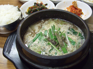 この日はひとりだったので生ビールとスンデクッパプを注文。