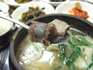 スンデクッパプにはレバーのほか、いろいろな内臓が入ります。