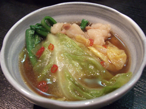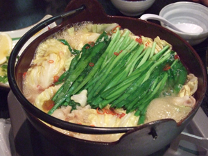 日本式に醤油味で食べるモツ鍋もやっぱり美味しいです。