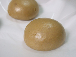 黒糖の色がはえる、つやつやの饅頭に仕上がりました。