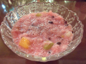 ブドウなどのフルーツが入っているほか、小さな餅やナタデココも。
