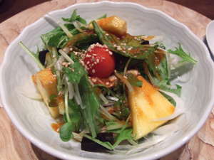 また、ドレッシングがわりにヤンニョム(薬味ダレ)がかかっており、