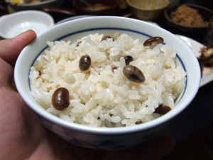 シメは大豆ごはん。