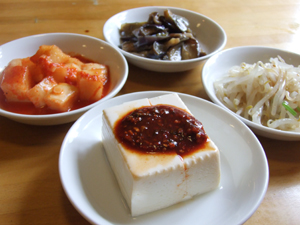 注文してほどなく出てきたのが4品のパンチャン。