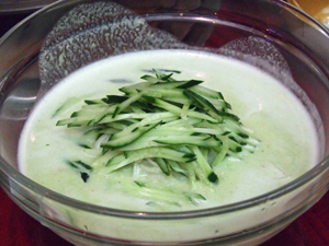 写真の色でもわかると思いますが、スープが緑色をしています。