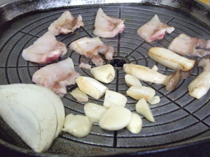冒頭の写真は、黒豚のサムギョプサル(豚バラ肉の焼肉)。