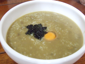 豚を煮込んで作ったスープにホンダワラという海藻を入れたモムクク。