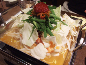 韓国的に言えばコプチャンジョンゴル(ホルモン鍋)でしょうか。