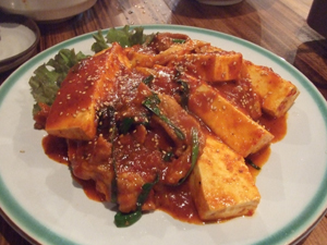 平たく言ってしまえば、豆腐と豚肉の甘辛炒めという感じです。