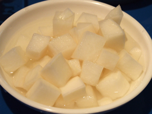 韓国のチキン料理には欠かせない角切り大根の酢漬けと、