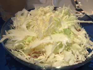 マヨネーズとケチャップを中に仕込んだ千切りキャベツ。