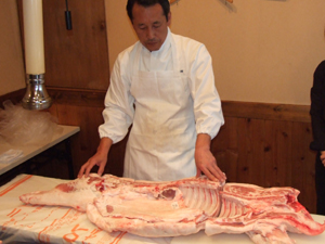 3時の定刻を待って、いよいよ「金華豚解体実演ショー」がスタート。