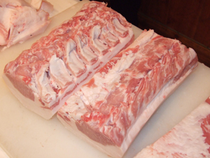 目の前にある半身が、想像する豚のイメージよりもはるかに小さい。