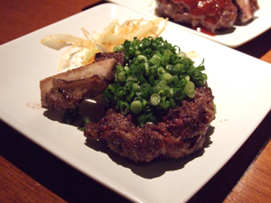 肉を叩いて下味をつけ、骨を埋め戻してから焼いた料理。