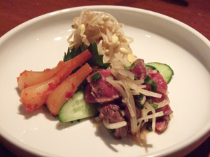 冒頭の写真はいきなりサービスで頂いた副菜盛り合わせ。