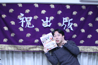 すっとひもを引っ張ると、「祝出版」の文字が出る仕組み。