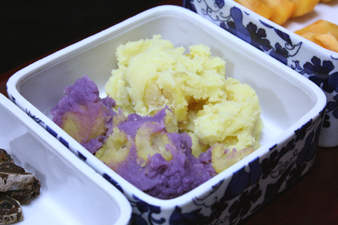 デザートがわりに出てきた栗きんとんと紫芋のきんとん。