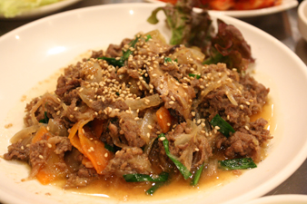 皿に盛りつけられて出てくるプルコギ(牛焼肉)に、